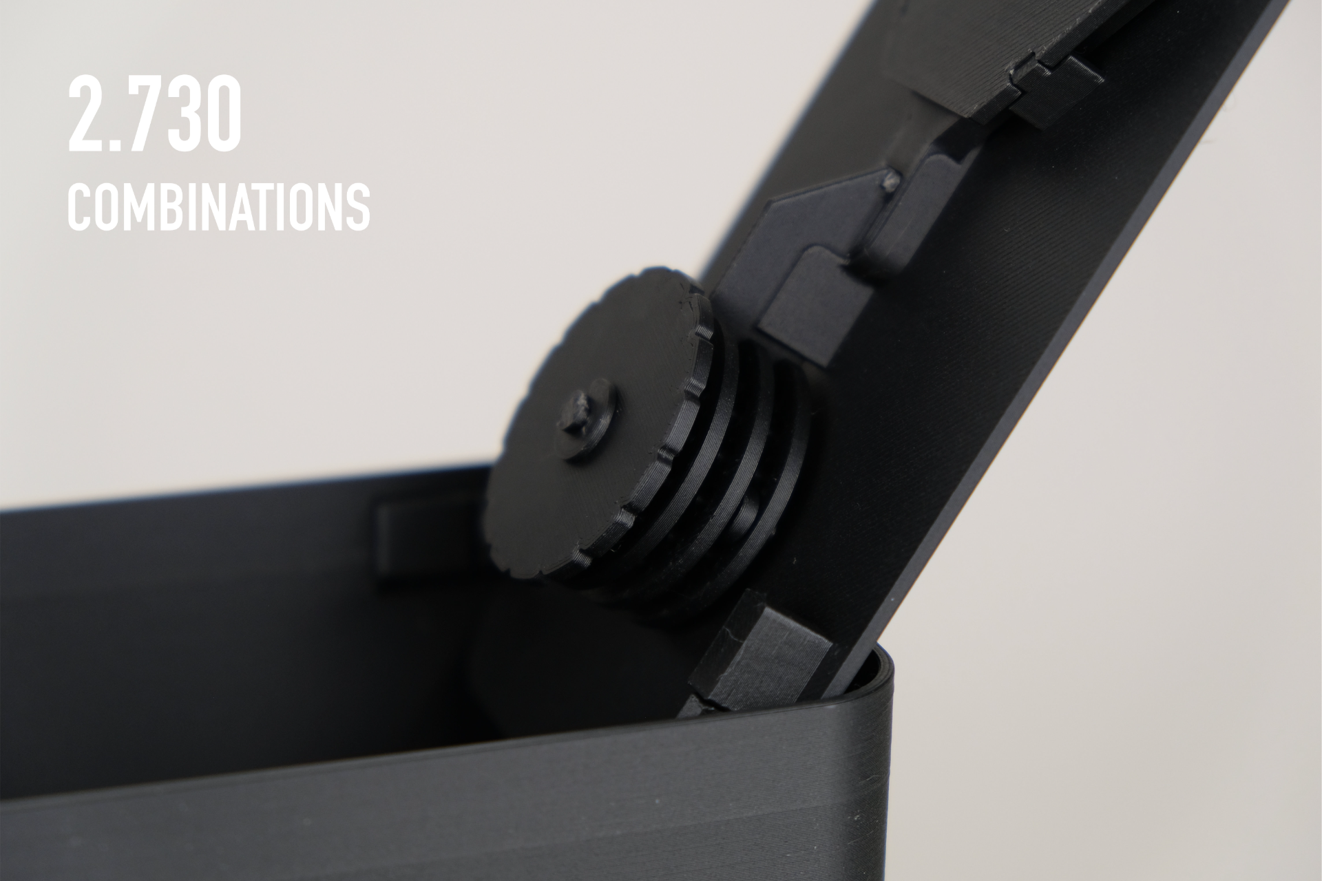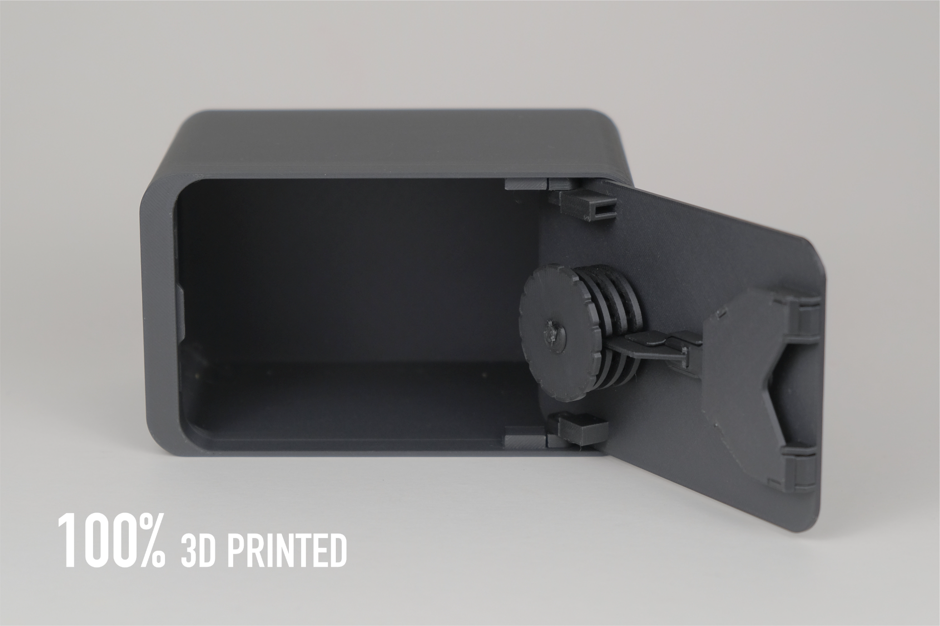 This miniature safe is 100% 3D printed and uses no additional parts. While not as secure as a steel safe, it offers childproofing and a practical learning experience in safe mechanics. It boasts 2,730 possible combinations for your chosen code.